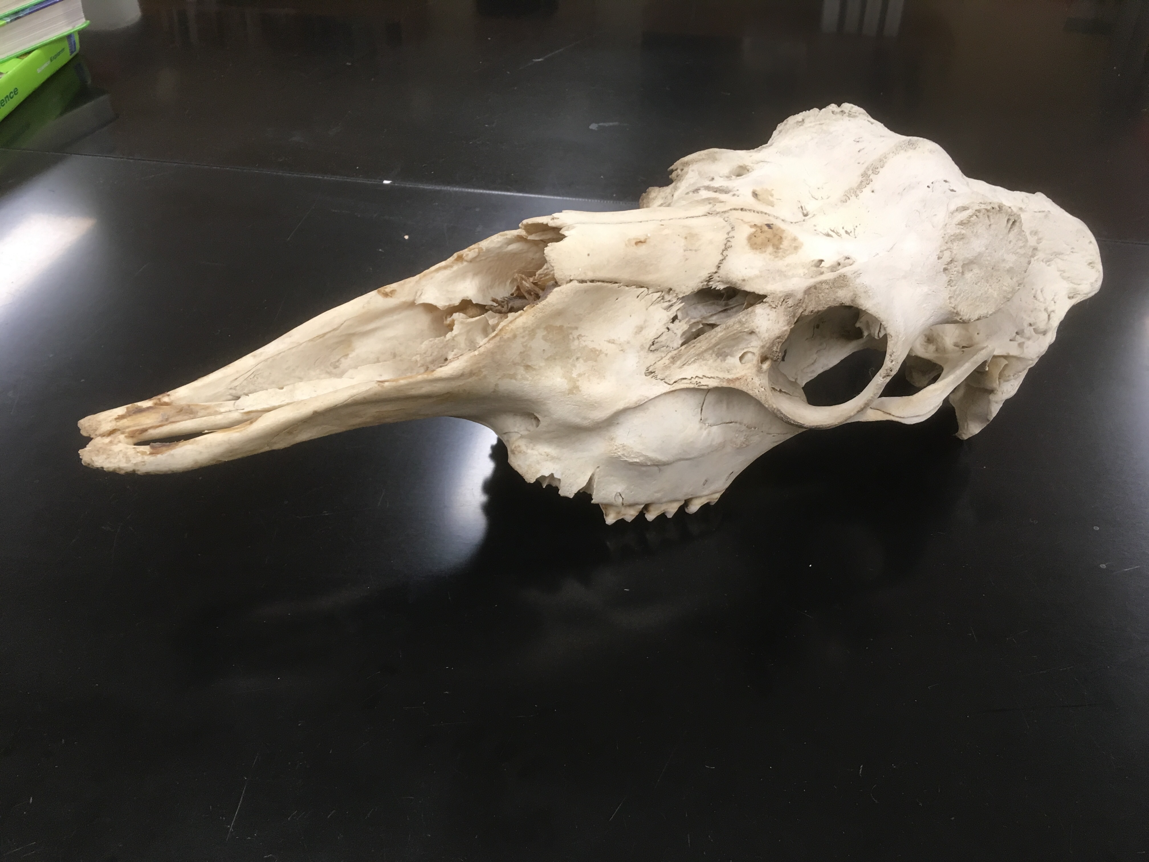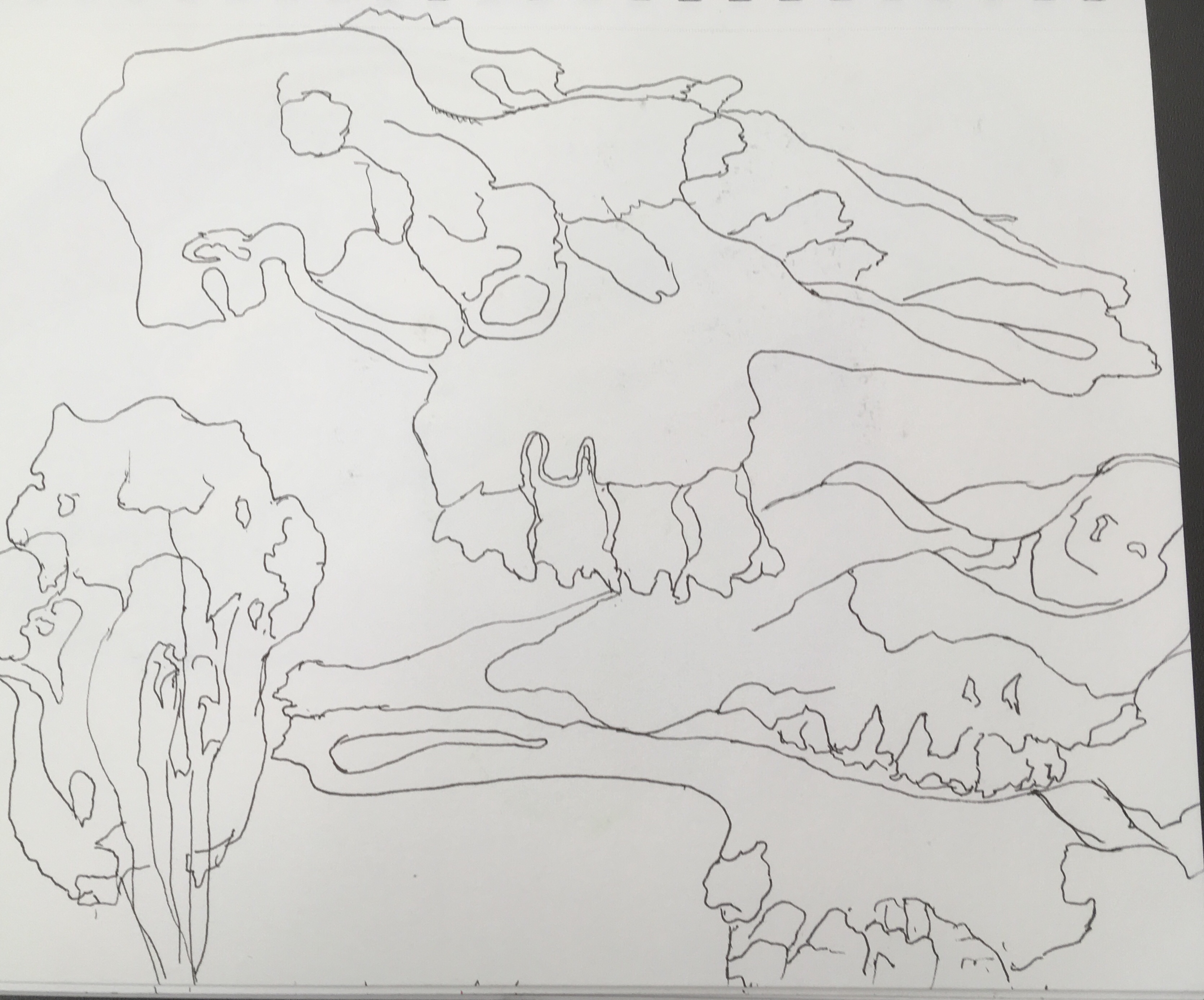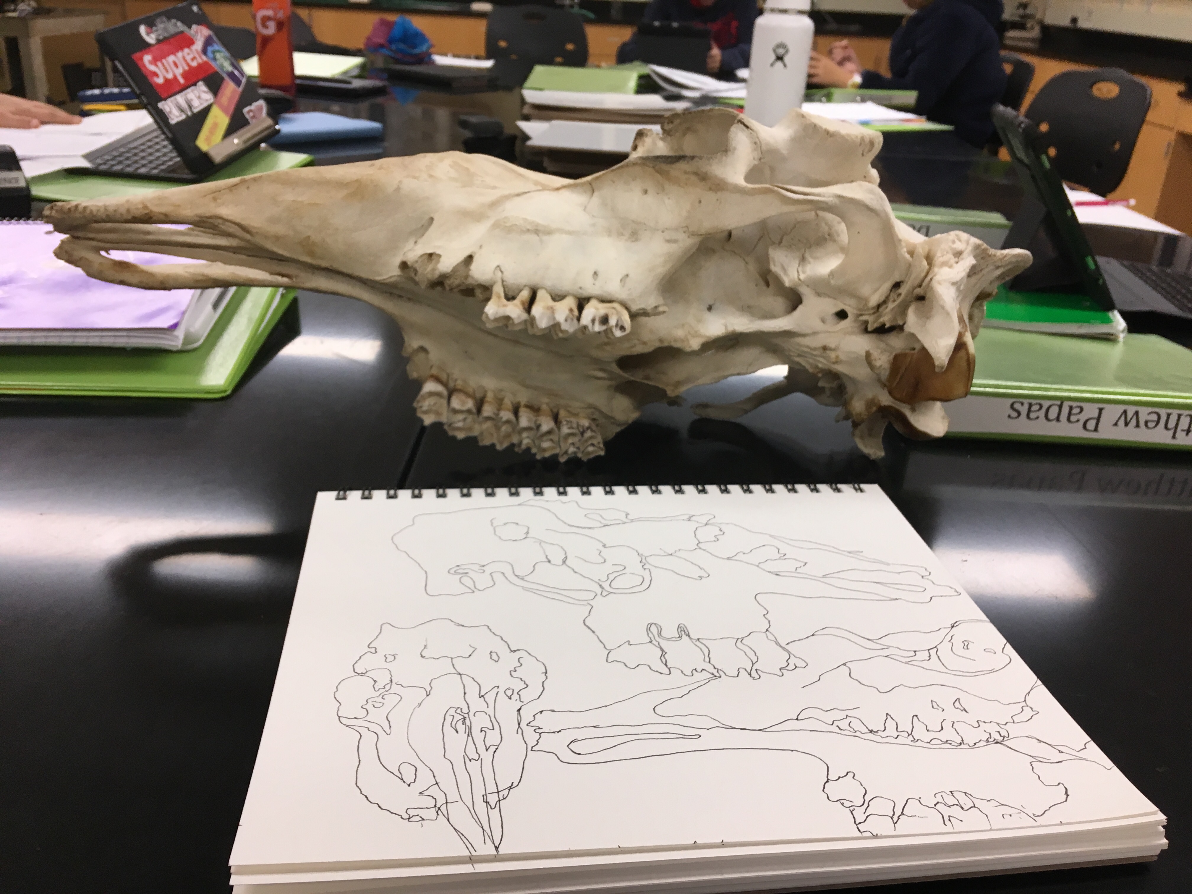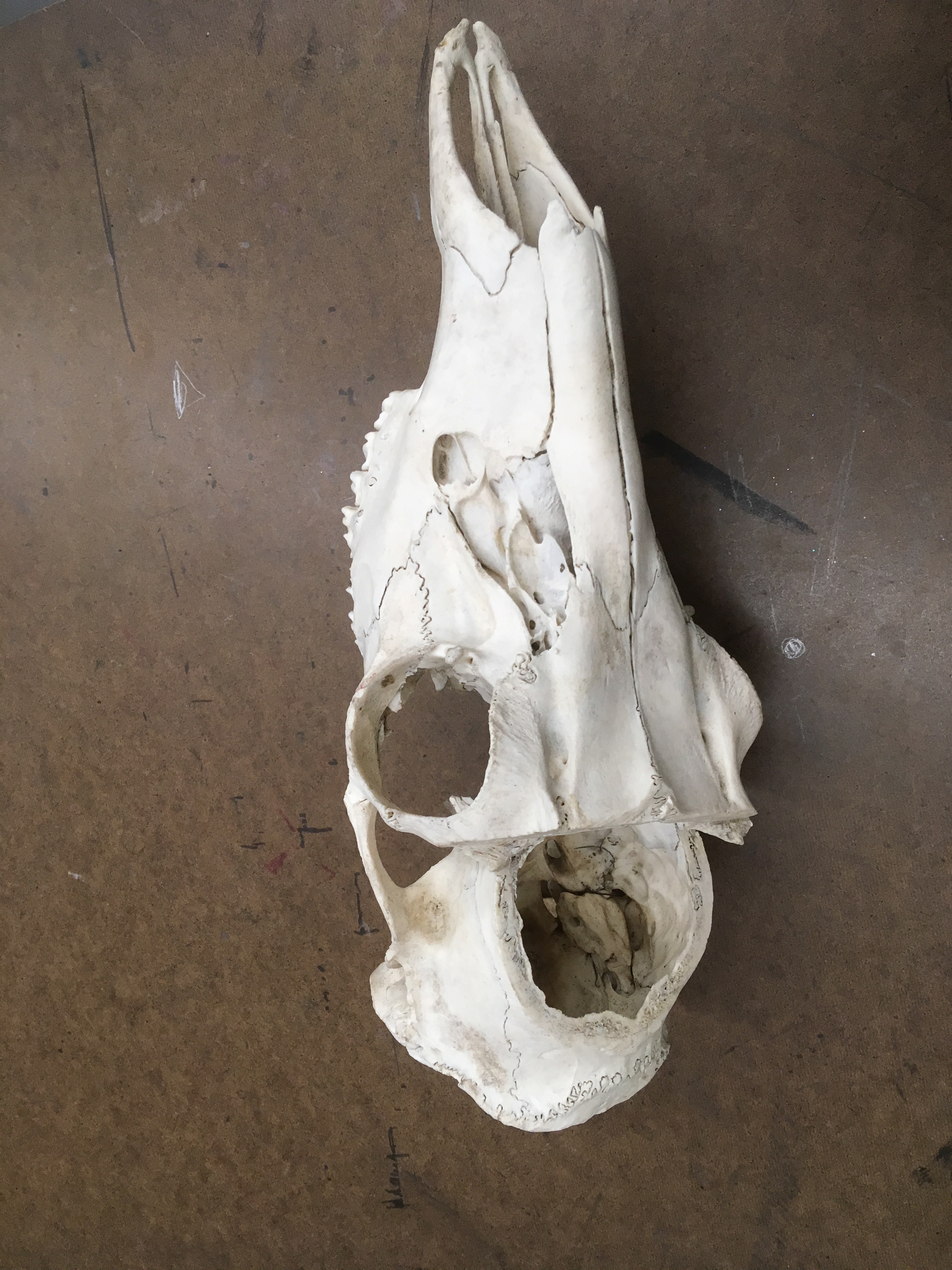 I found this skull bone in the “junk to draw” bin in the 8th grade art classroom. The box predates the teacher who has no idea what beast the bone is from.