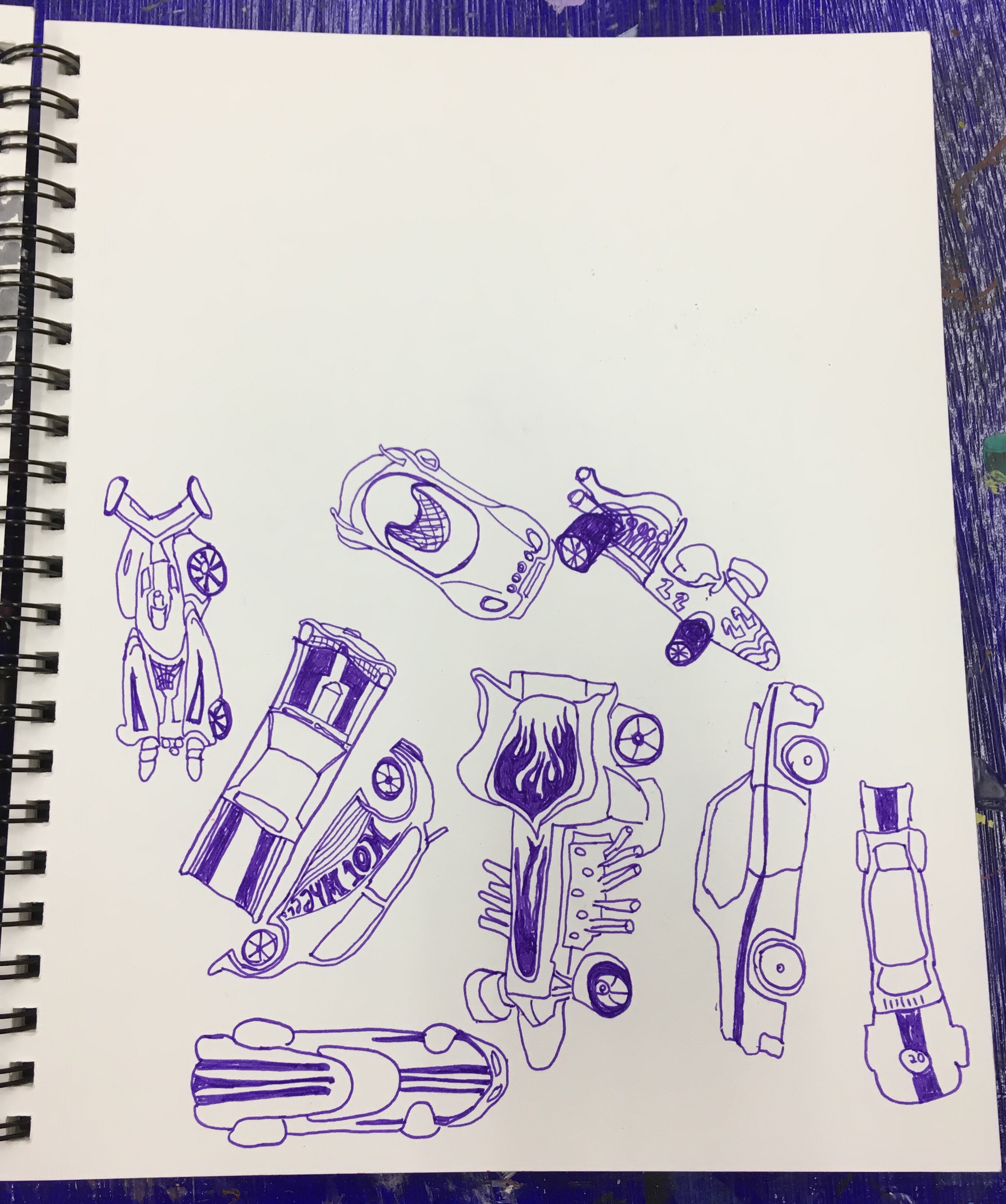 I don’t have enough cars to fill a page. Maybe I should draw them all again to fill the empty space.