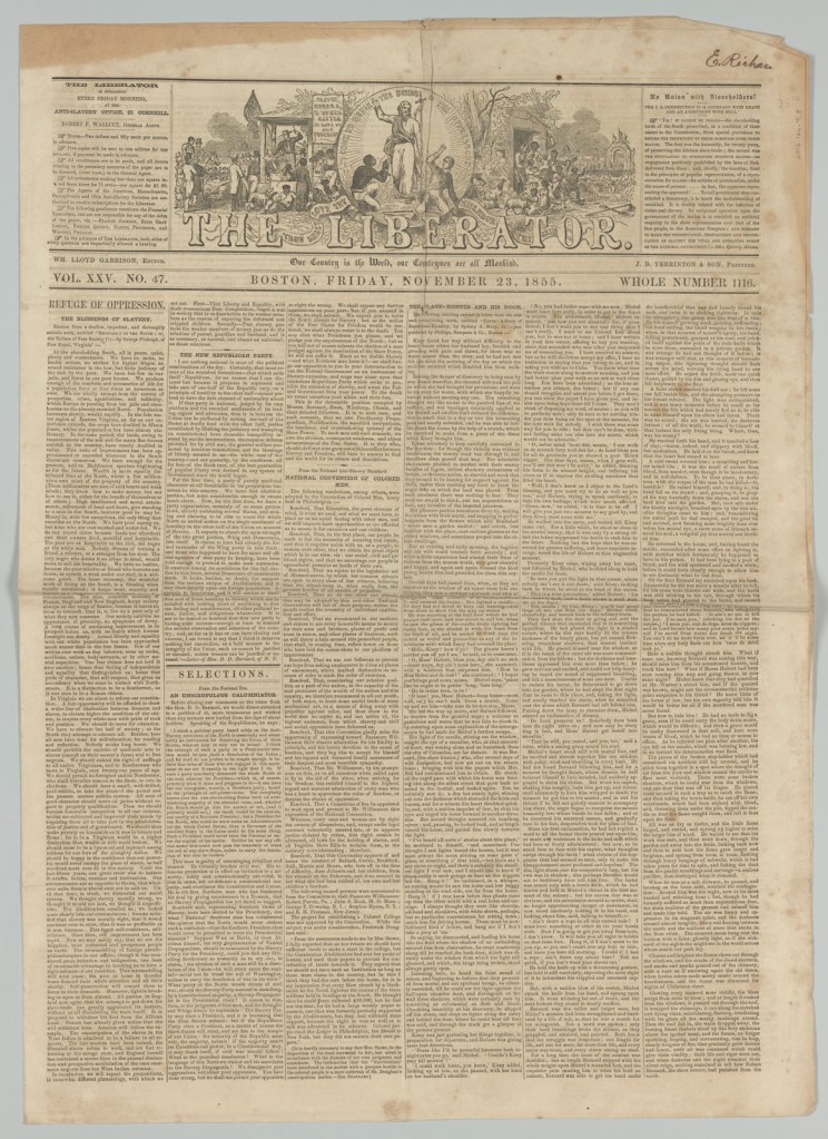 Garrison’s paper was thought to be in on Nat Turner’s revolution – either directly or indirectly. The south put a price on his head.