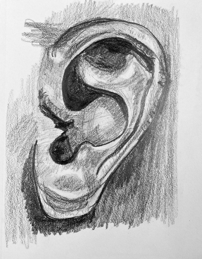 Ears Posted byrtsallieNovember 3, 2022Posted inDaily Art, homeworkTags:graphite, homework, practice, sketchbook Drawn in a Carson XL 9 by 12 mixed media sketchbook with graphite. Drawn in a Carson XL 9 by 12 mixed media sketchbook with graphite. Drawn in a Carson XL 9 by 12 mixed media sketchbook with graphite. Related