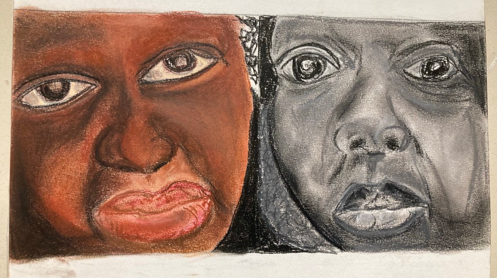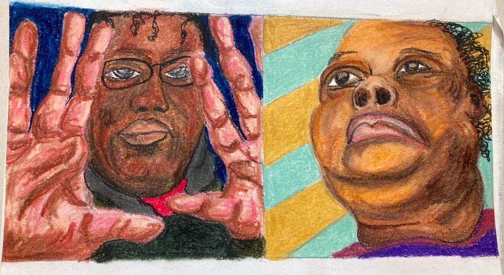 To prepare for the final project on identity, I completed ten 6 inch by 6 inch self portraits using soft pastels.