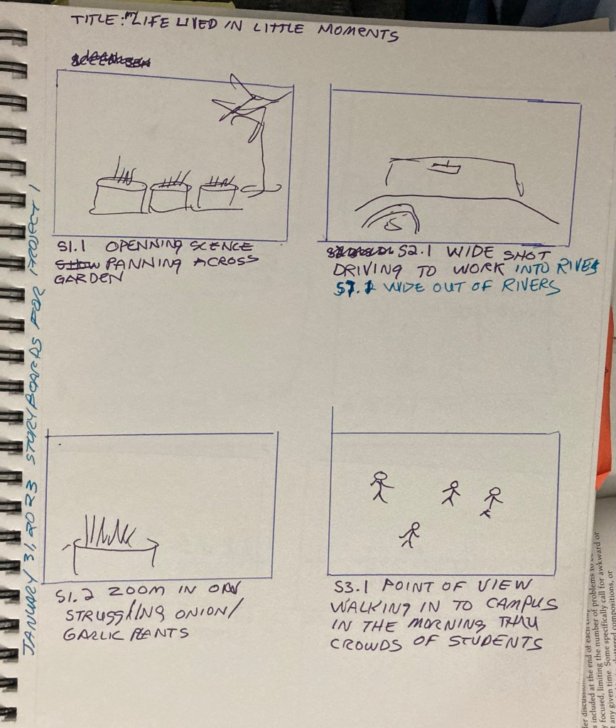 Filmmaking is about communicating ideas through audio-visual means. In this class I will practice visual storytelling that is personal and compelling and learn to connect with my audience in impactful and meaningful ways.