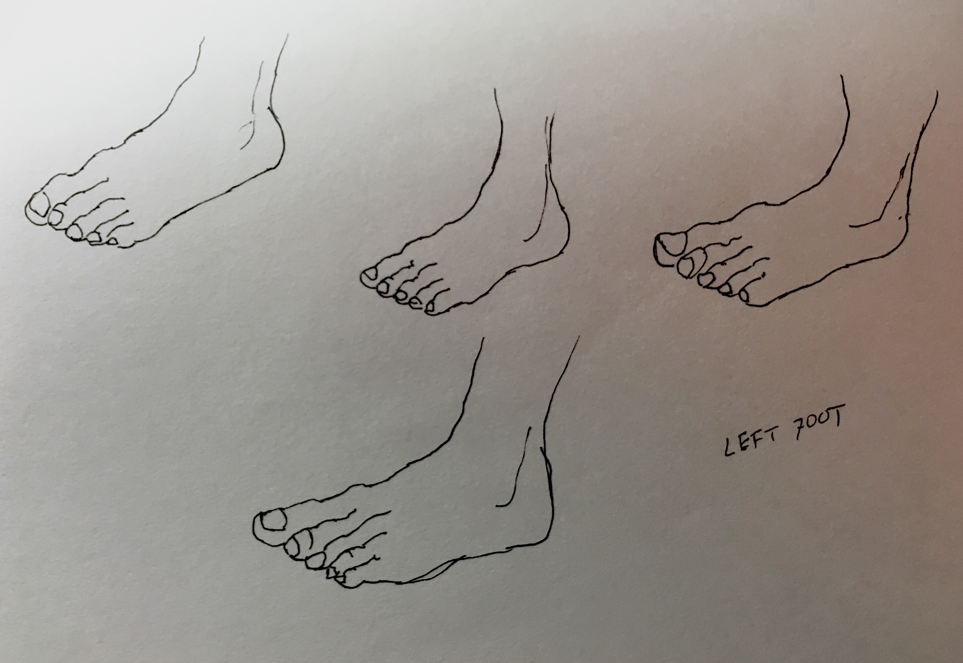 Begin any life drawing with a blind contour. It helps switch off the voices (inner critics). Plus, it lets you really look at your subject.