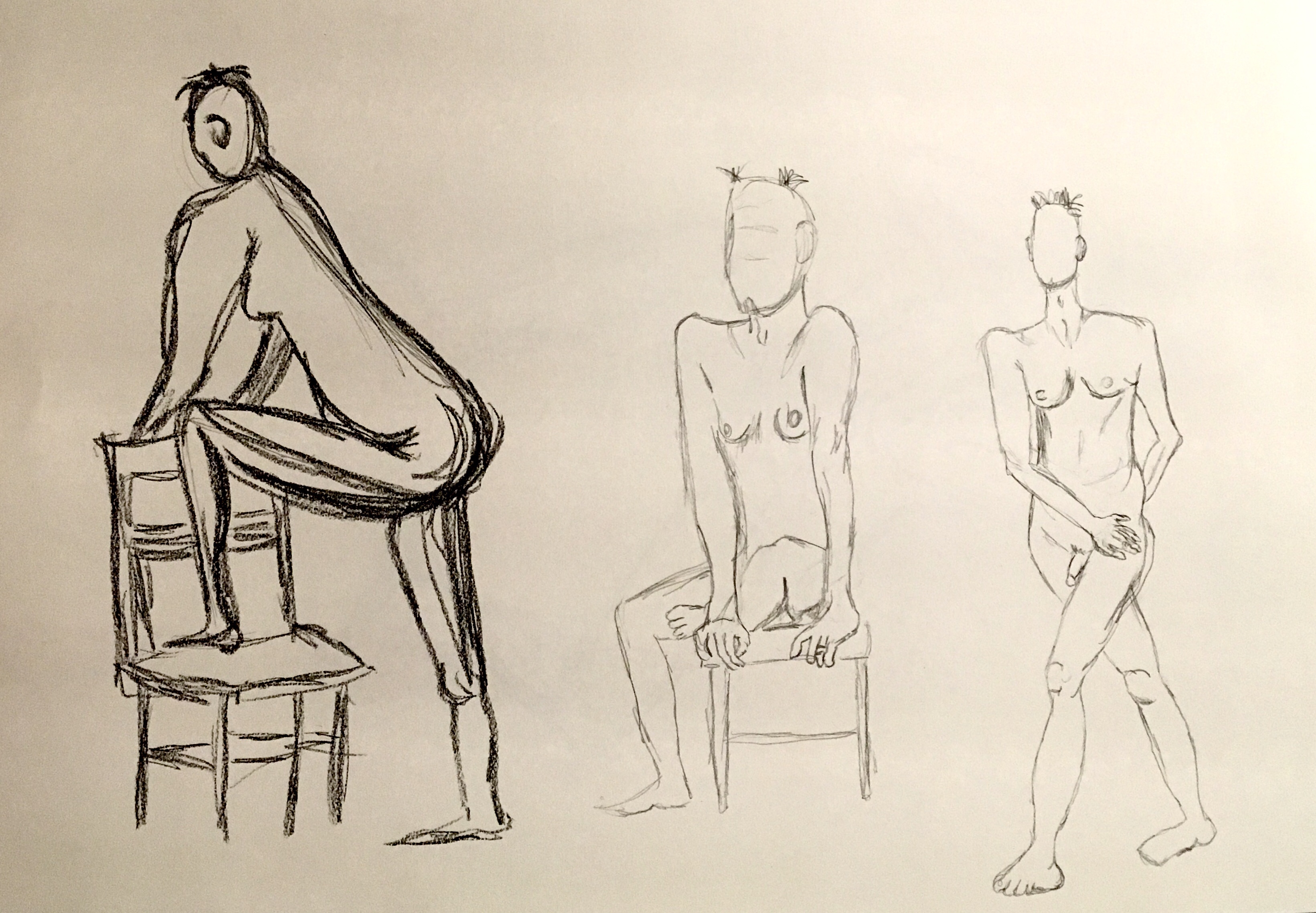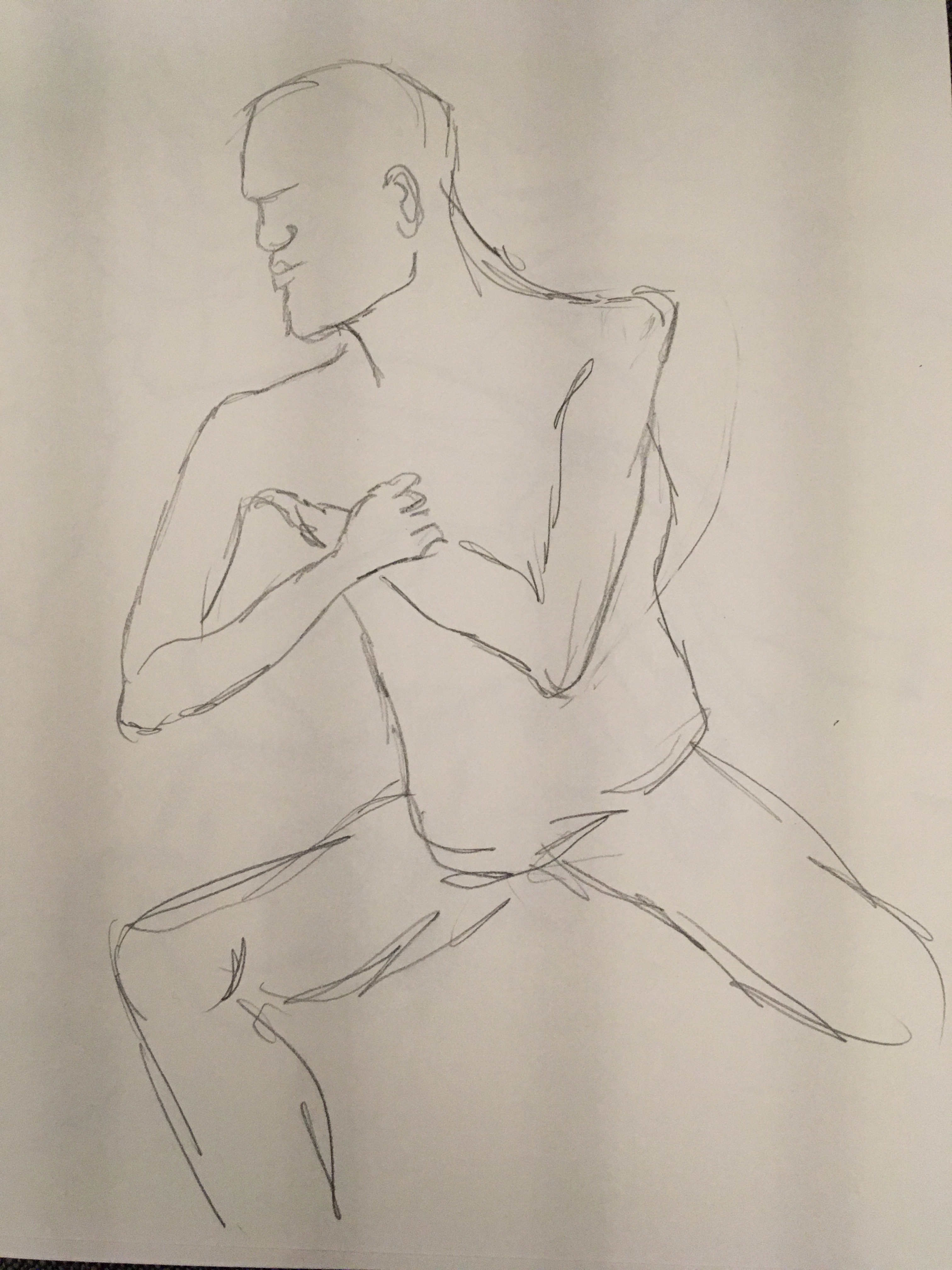 Thursday’s life drawing session was a “long pose.” The long pose session was three 5-minutes poses and the the rest of the 3 hour session was the same pose.