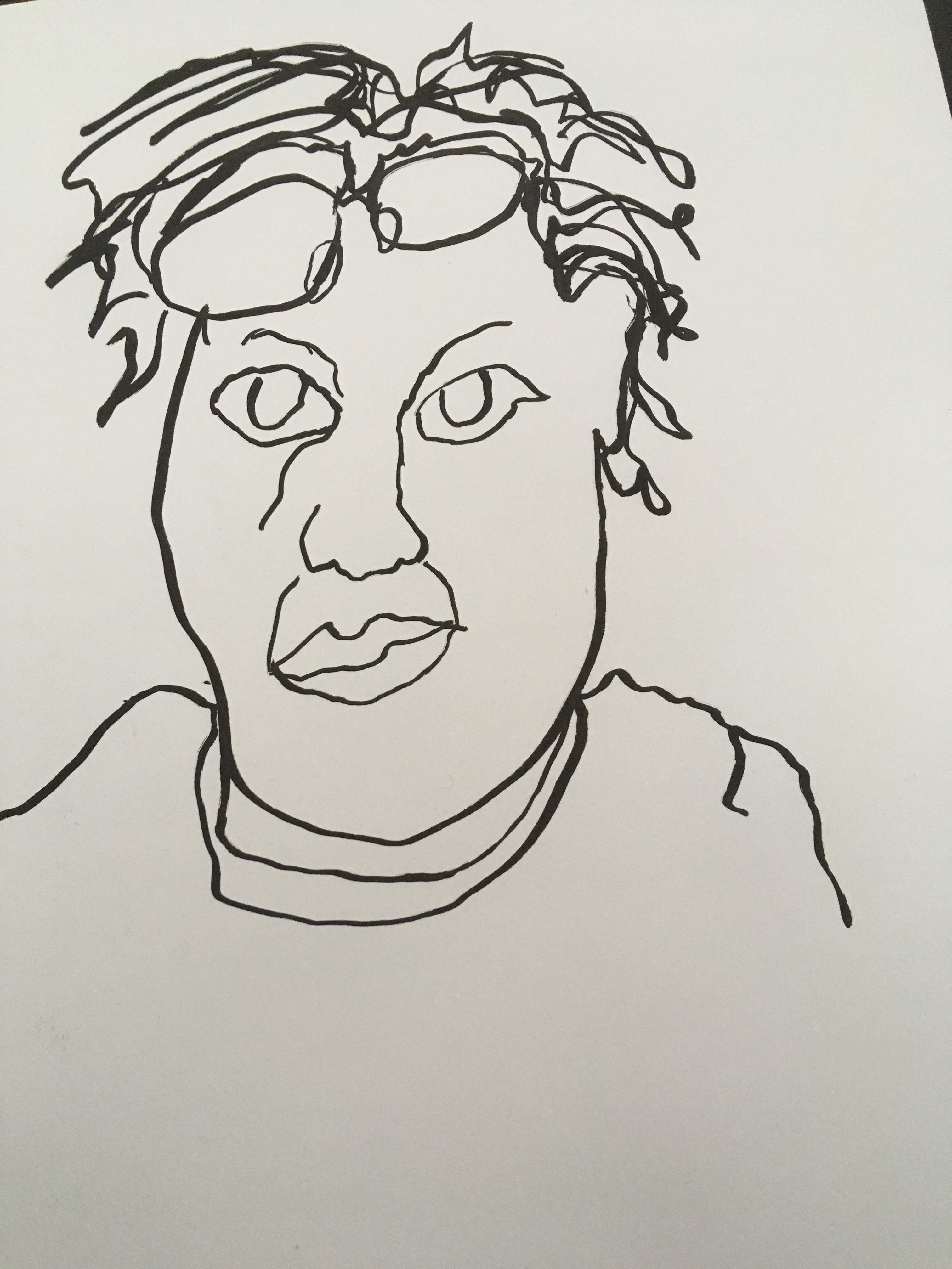 Before last week I rarely looked at myself in the mirror. Koosje Korne, a teacher online art class called “Seeing” that I am taking at the sketchbookskool.com assigned a selfie a day for a week to be done in five different styles: